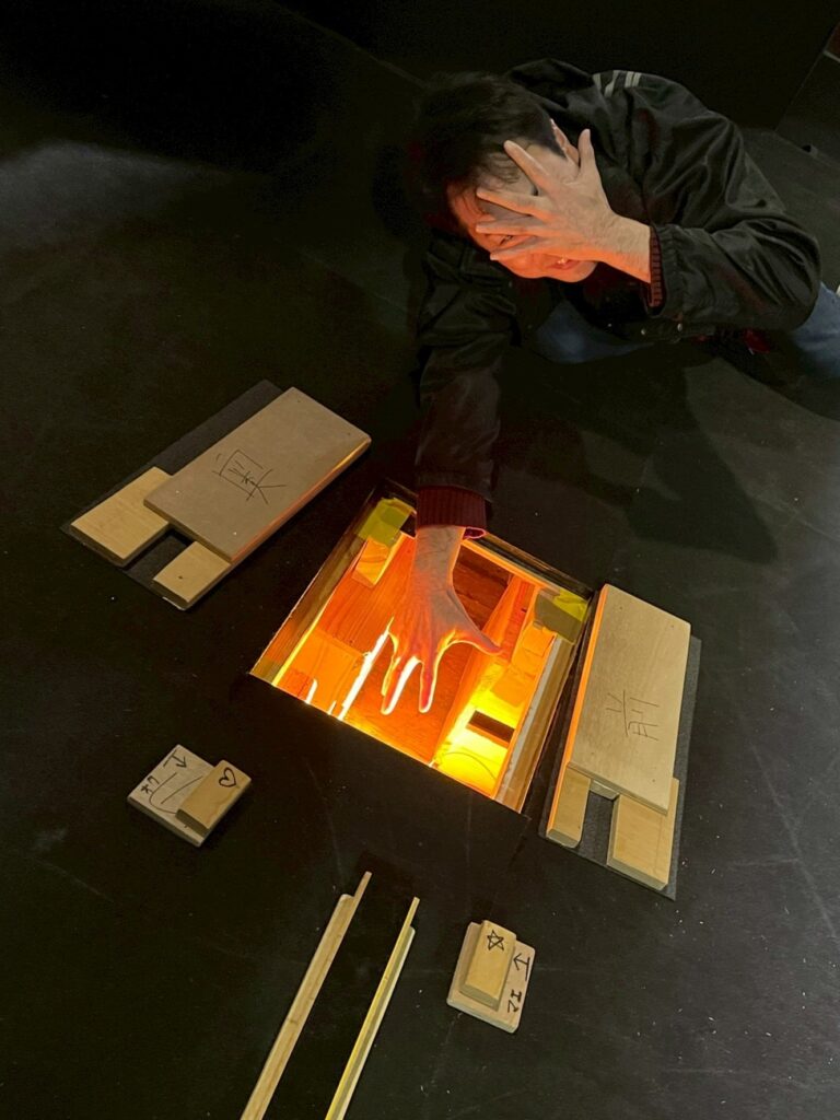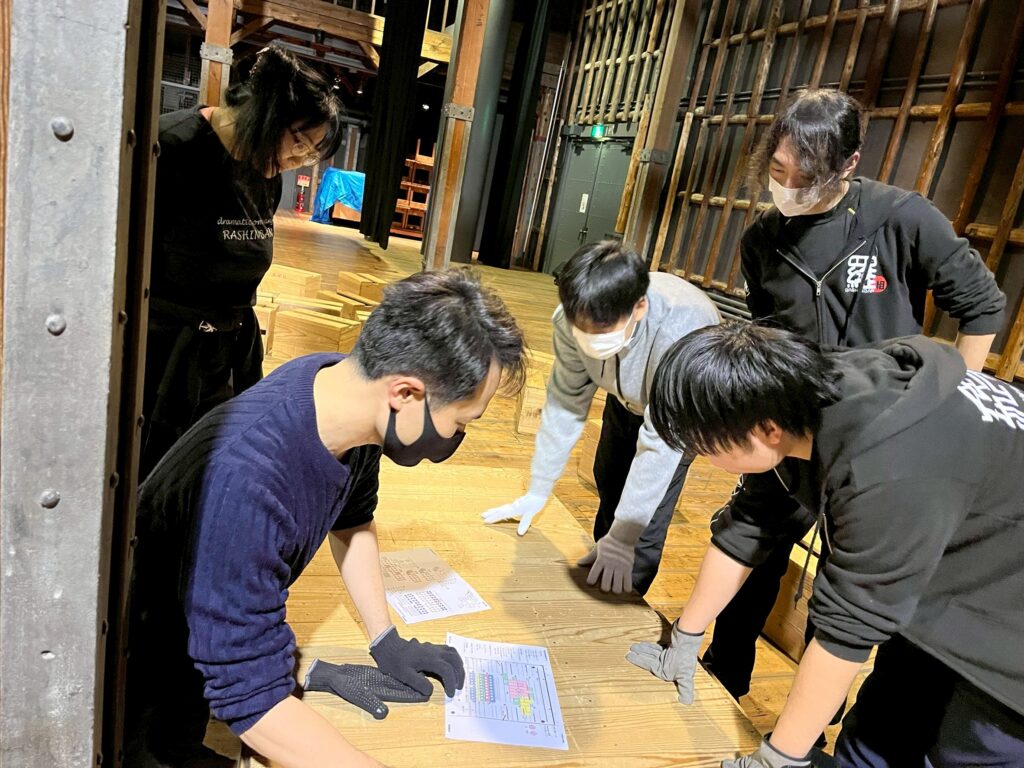 稽古場で意気揚々と立体パズルを作って小屋入りし、いそいそと組み立てて───サイズが合わねえ。