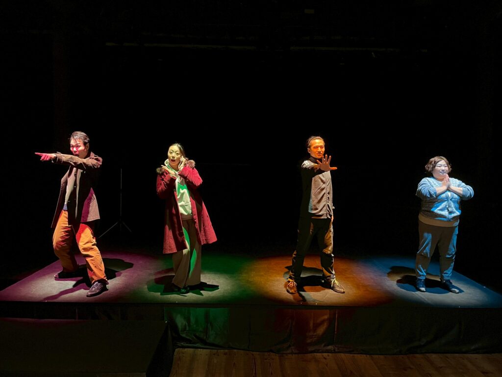 照明席から皆の芝居を観るのは本当に新鮮でした。ええ、稽古と立ち位置も違うので灯りを足したり引いたりです。みんな自由でとっても良いと思います。
