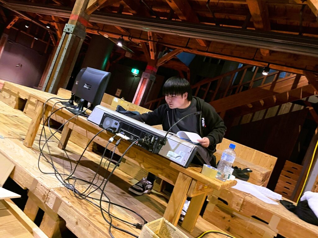 平田:照明のバラシをもっさんに手伝ってもらったのは懐かしかったよ。去年の背水の陣もそうだけどさ、ほぼほぼ平田宮崎でバトンを上げ下げして照明吊るしてっていう…まあ、時間帯によっては俺1人もあったかな。意外とね、1人でもなんとかなるんですよ。